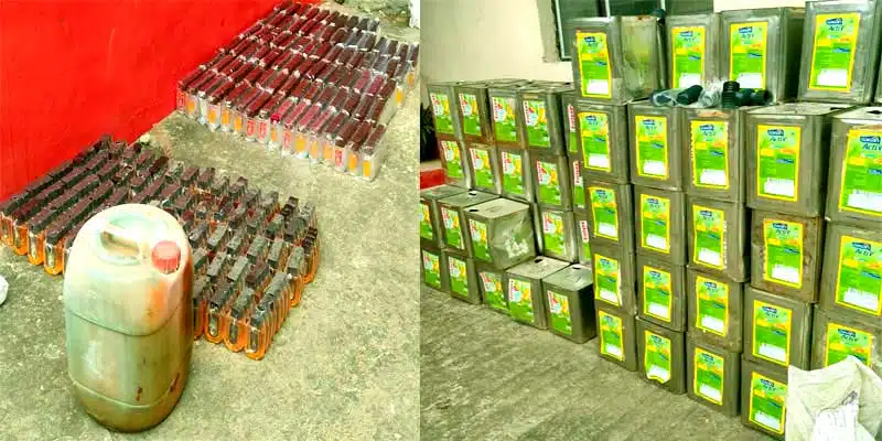 छापेमारी के दौरान टीम ने भारी मात्रा में नकली रिफाइन तेल बरामद किया। मौके से फॉर्च्यून और गगन एक्टिव सोयाबीन रिफाइन के खाली टिन, बजाज अलमान्ड आयल के डिब्बे और रैपर भी जब्त किए गए। जांच में सामने आया कि खराब गुणवत्ता वाले रिफाइंड तेल को फॉर्च्यून के 15 लीटर वाले टिन में भरकर उस पर फॉर्च्यून का स्टीकर लगाया जाता था और फिर उसे असली बताकर बाजार में खपाया जाता था।