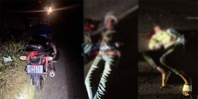इस्लामपुर (नालंदा दर्पण)। खुदागंज थाना क्षेत्र के सकरबिगहा गांव के पास बीती देर रात एक भयावह सड़क हादसे ने दो युवा जिंदगियां छीन लीं। बाइक पर सवार कोचरा गांव निवासी नगीना कुमार पिता राम प्रवेश रविदास और जहानाबाद जिला के काको थाना क्षेत्र निवासी रवि कुमार पिता शक्ति दास की मौके पर ही दर्दनाक मौत हो गई।