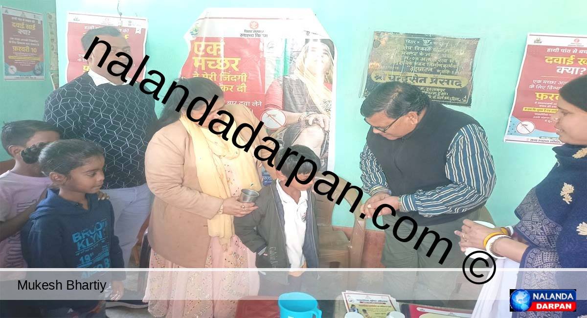 इस्लामपुर (नालंदा दर्पण)। इस्लामपुर प्रखंड क्षेत्र में फलेरिया जैसी गंभीर बीमारी के समूल उन्मूलन को लेकर स्वास्थ्य विभाग ने कमर कस ली है। इसी क्रम में अतासराय आंगनबाड़ी केंद्र पर बच्चों को फलेरिया रोधी दवा पिलाकर विशेष अभियान का विधिवत शुभारंभ किया गया। अभियान की शुरुआत होते ही स्वास्थ्यकर्मियों और आंगनबाड़ी सेविकाओं में खासा उत्साह देखने को मिला।