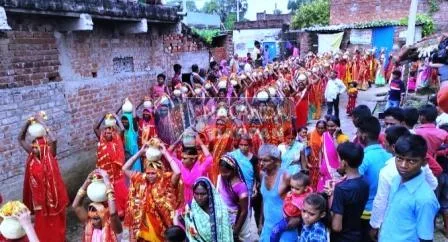 इसलामपुर (नालंदा दर्पण )। इसलामपुर प्रखंड के कटवा रसलपुर गांव मे ग्रामीणों के सहयोग से माँ शारदीय नवरात्रा की कलश स्थापना के पूर्व कलश के साथ शोभायात्रा निकाली गयी।